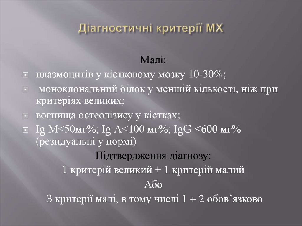 3 критерії малі, в тому числі 1 + 2 обов’язково