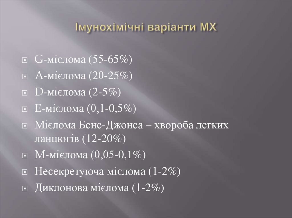 G-мієлома (55-65%)A-мієлома (20-25%)