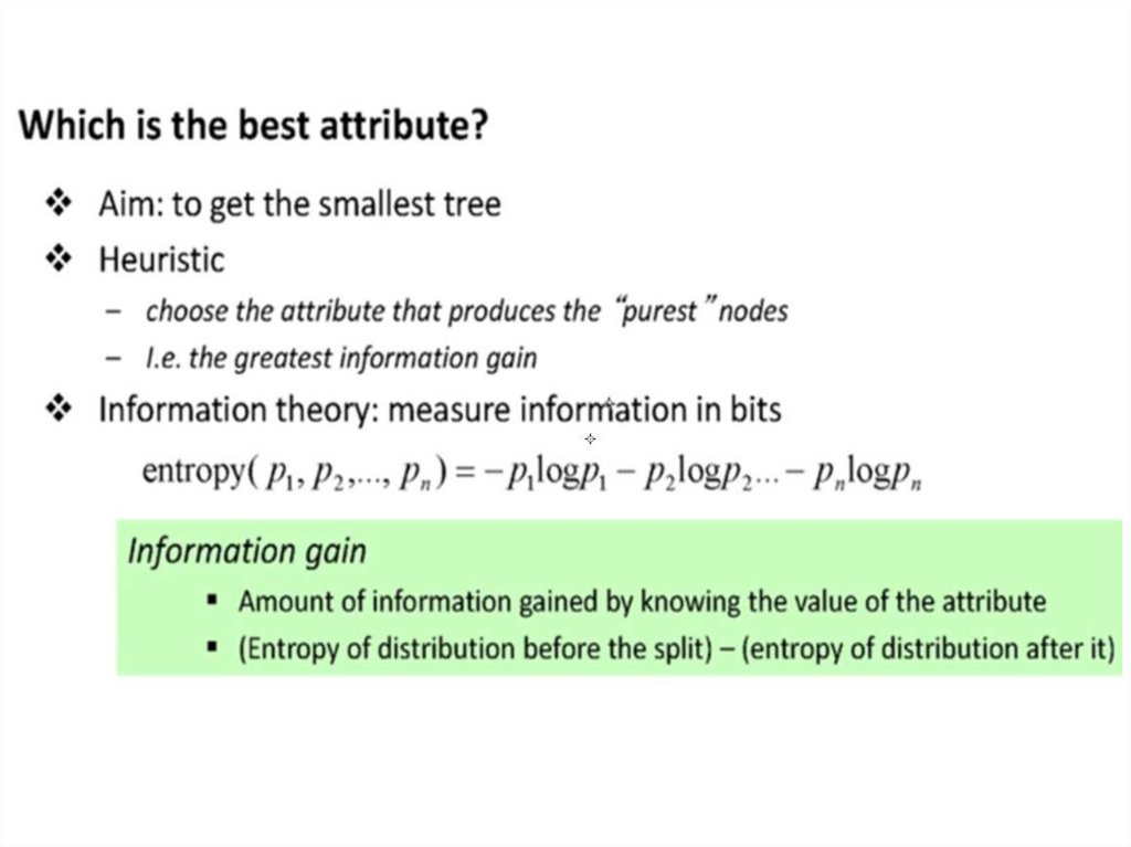 entropy(p1, p2, .... pn) = -p1 log p1 - p2 log p2 ... - pn log pn3.