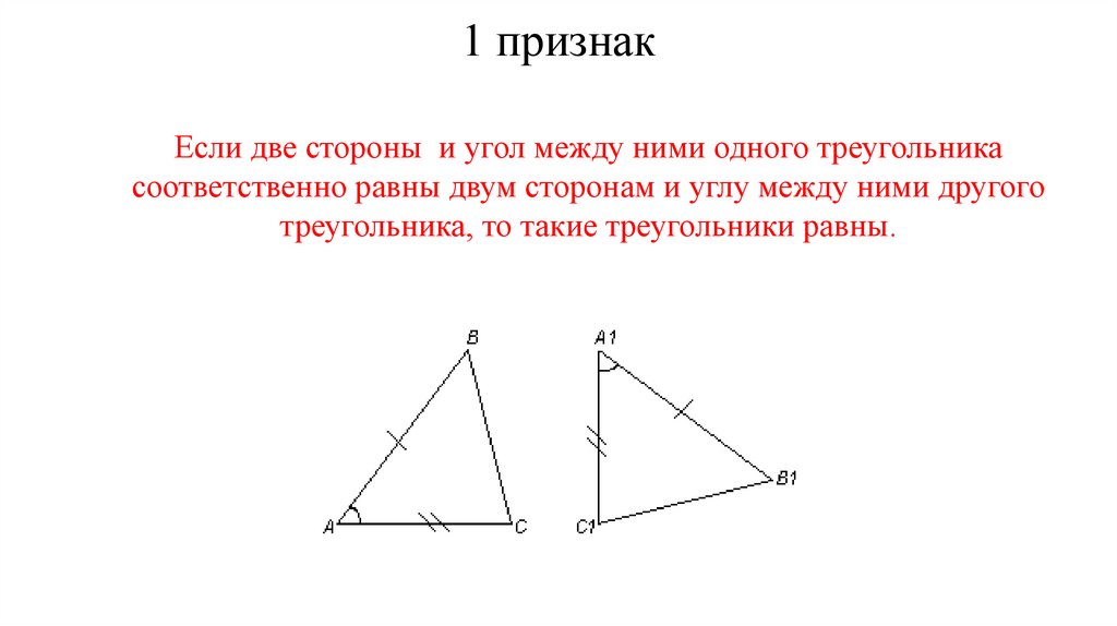 1 признакЕсли две стороны и угол между ними одного треугольника