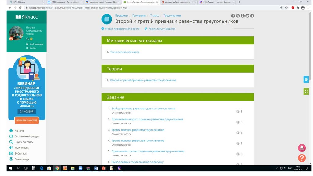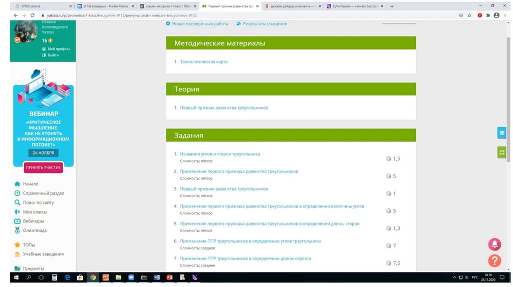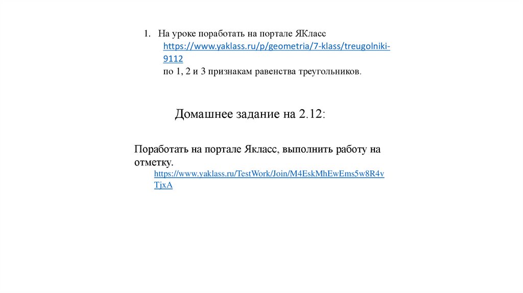1. На уроке поработать на портале ЯКлассhttps://www.yaklass.ru/p/geometria/7-klass/treugolniki9112