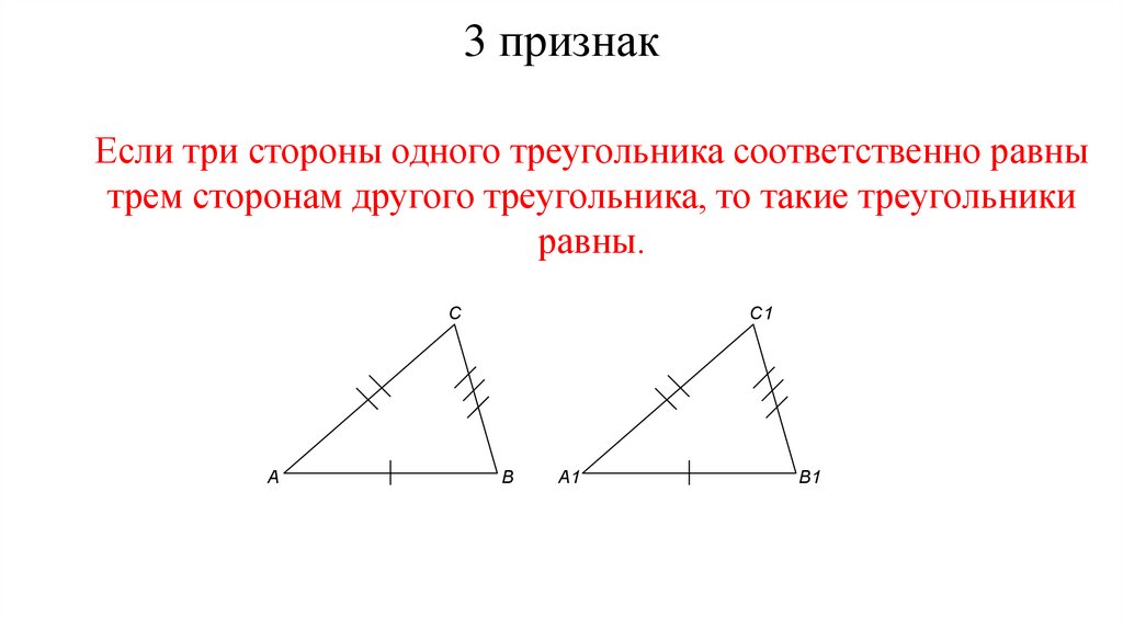 3 признакЕсли три стороны одного треугольника соответственно равны