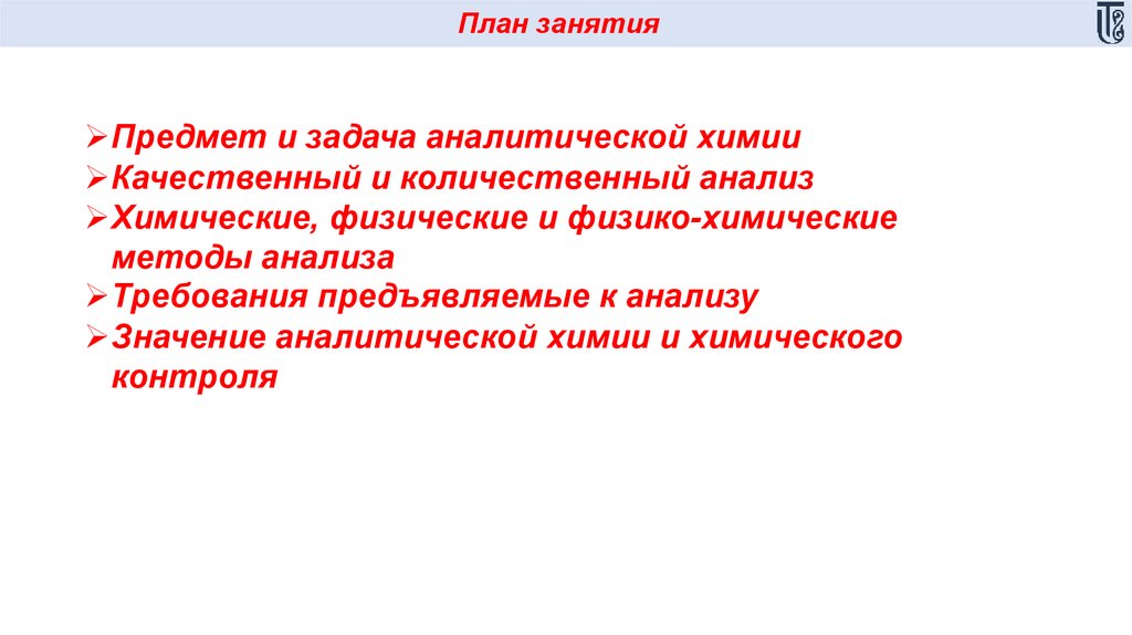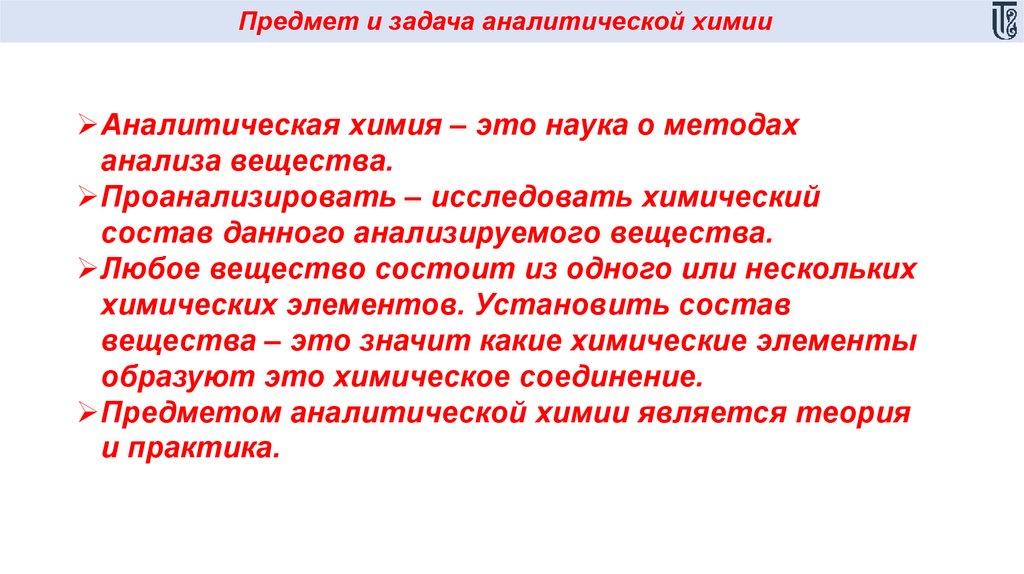 Предмет и задача аналитической химииАналитическая химия – это наука о методах