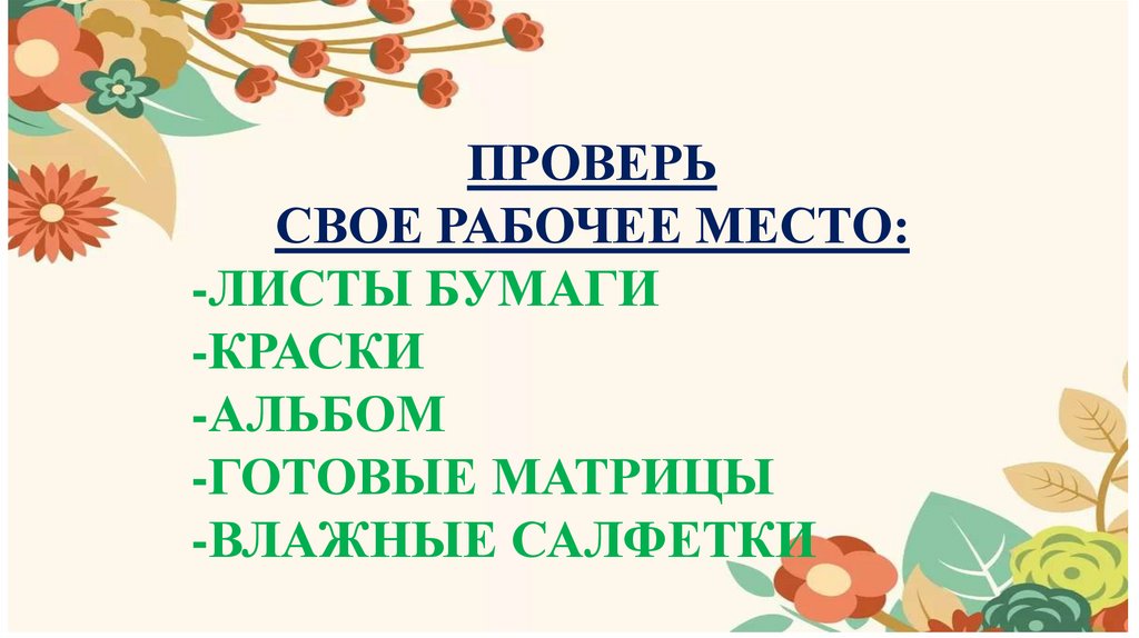 ПРОВЕРЬСВОЕ РАБОЧЕЕ МЕСТО: