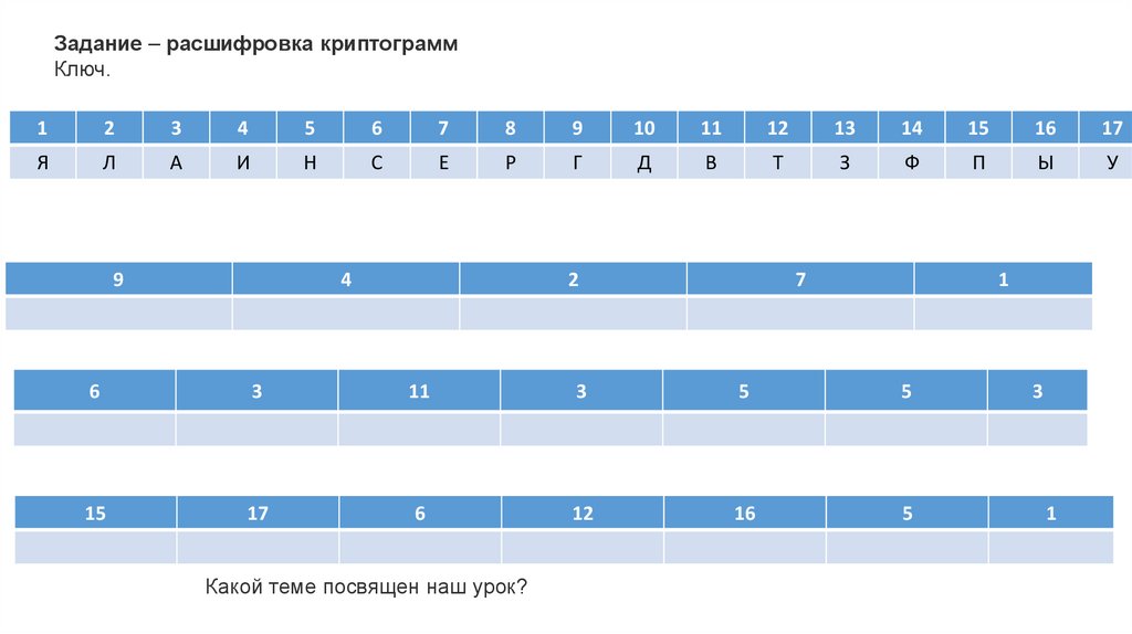 Задание – расшифровка криптограммКлюч.