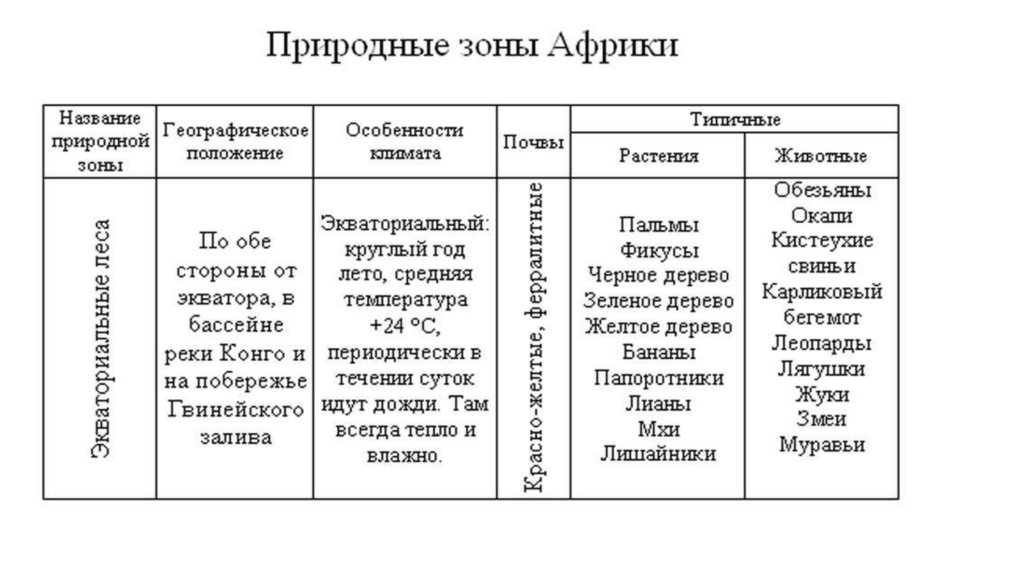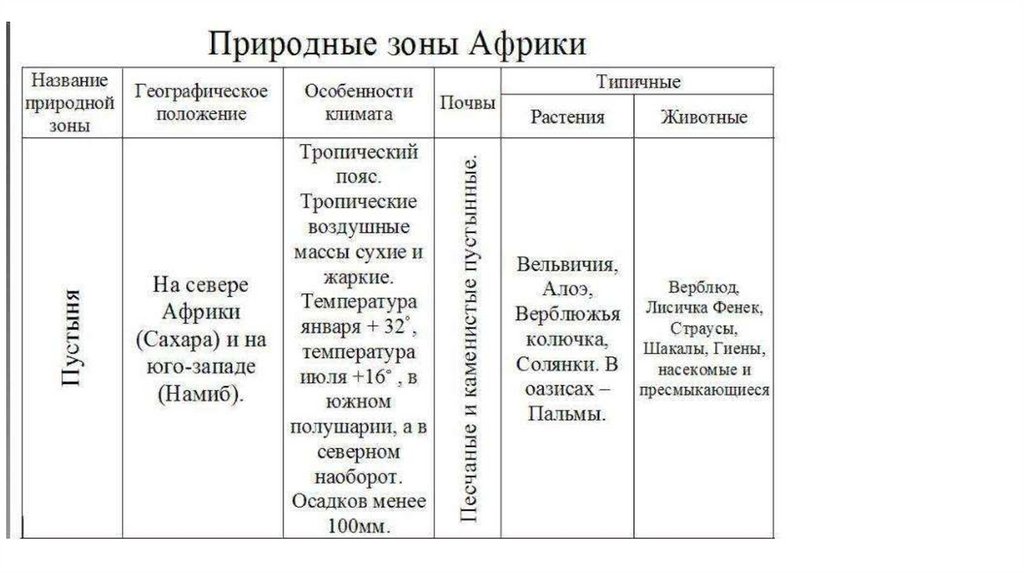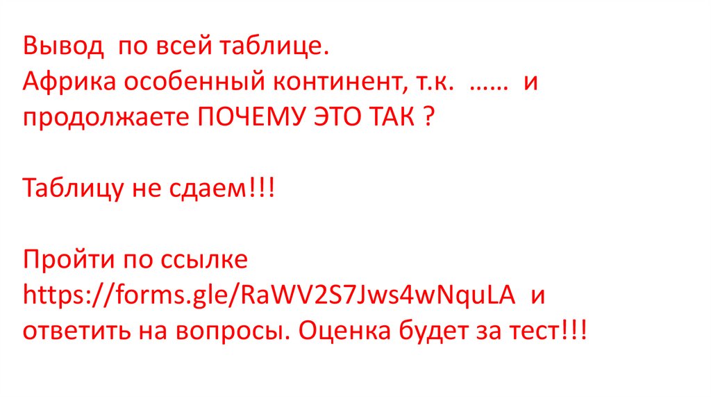 Вывод по всей таблице.Африка особенный континент, т.к. …… и