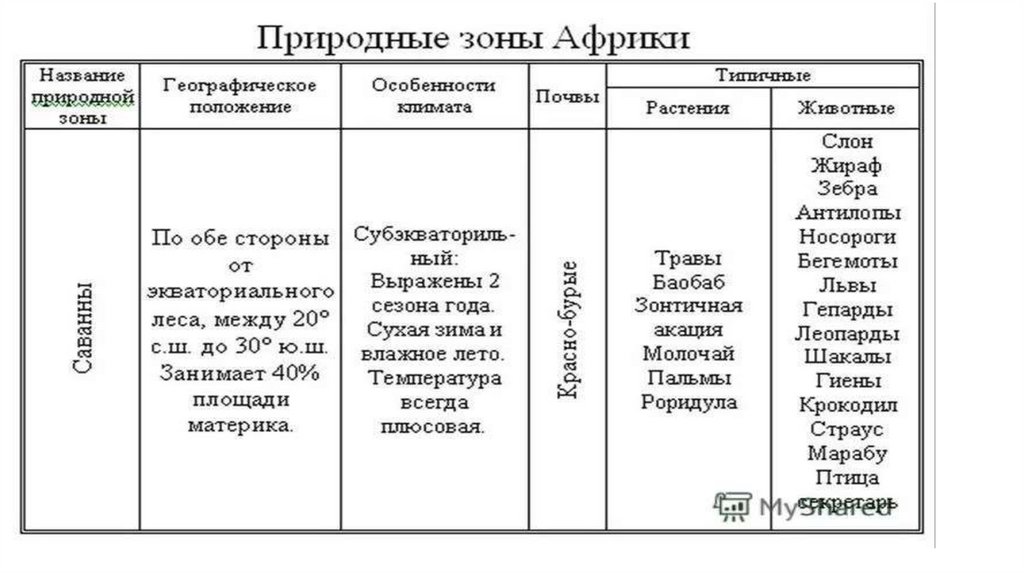 Природные зоны Африки. 7класс