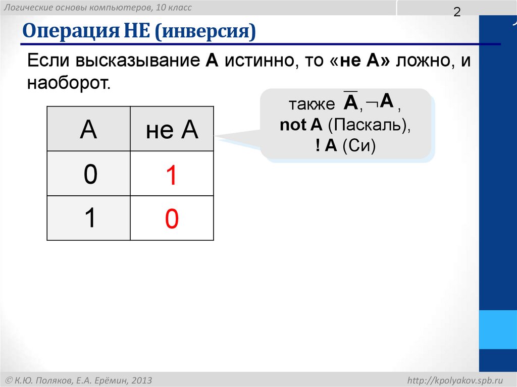 Операция НЕ (инверсия)