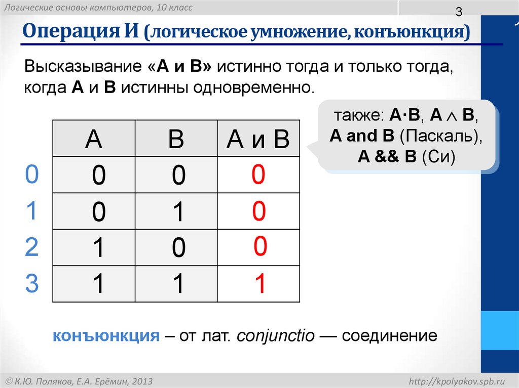 Операция И (логическое умножение, конъюнкция)