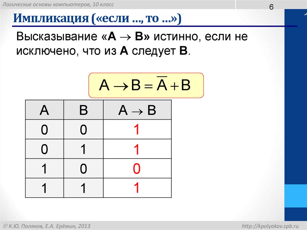 Логические основы компьютеров, 10 класс6