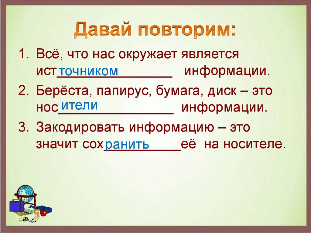 2. Берёста, папирус, бумага, диск – это