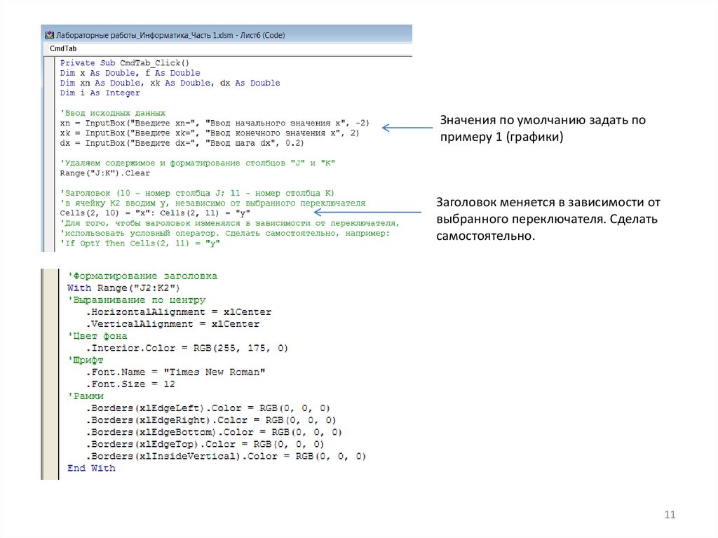 Значения по умолчанию задать попримеру 1 (графики)