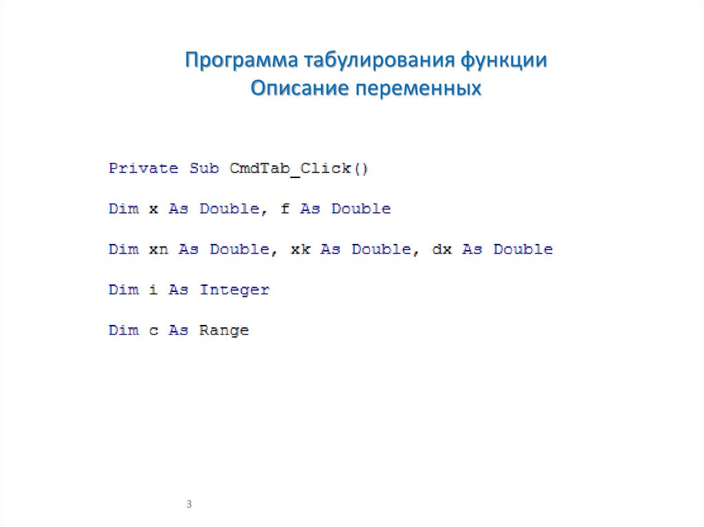 Программа табулирования функцииОписание переменных