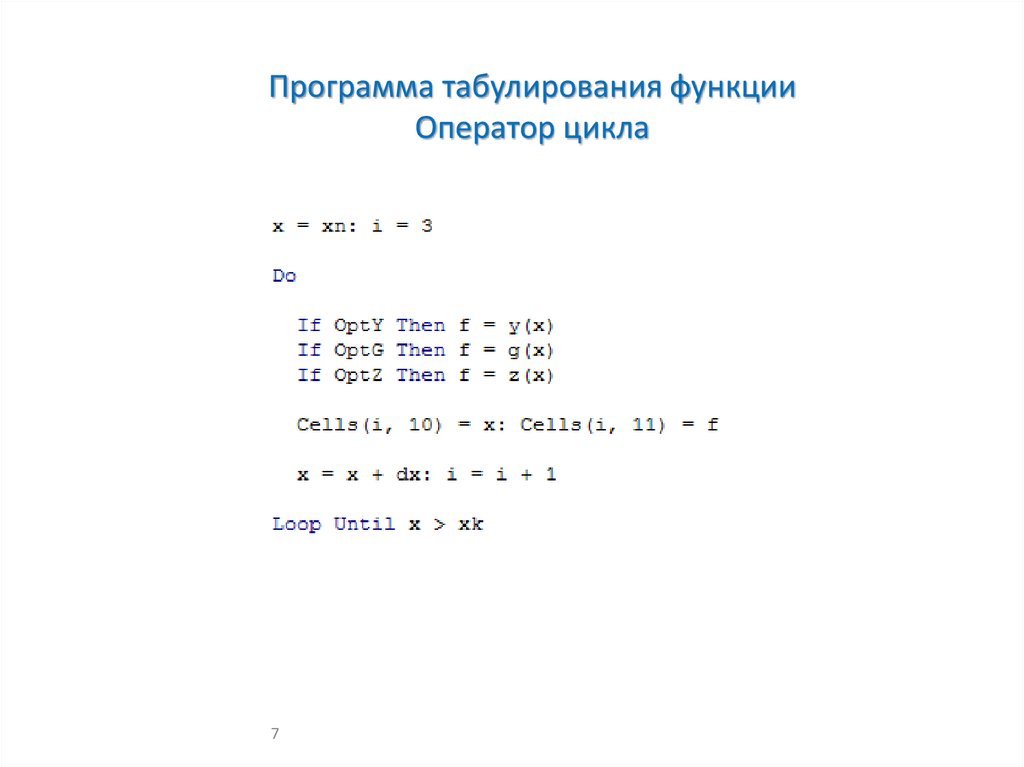 Программа табулирования функцииОператор цикла