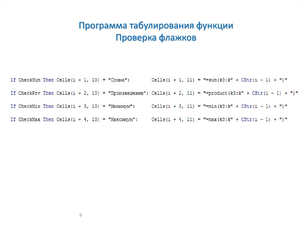 Программа табулирования функцииПроверка флажков