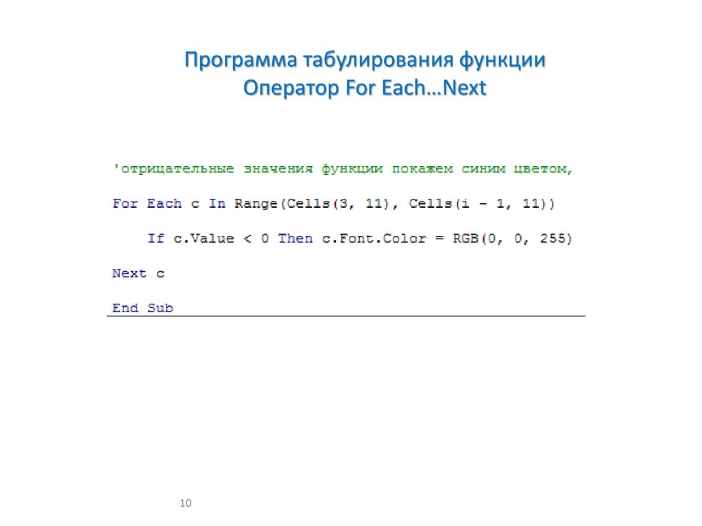 Программа табулирования функцииОператор For Each…Next