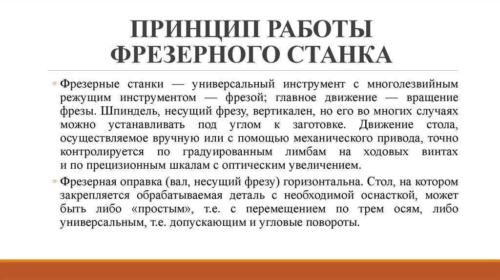 ПРИНЦИП РАБОТЫФРЕЗЕРНОГО СТАНКА