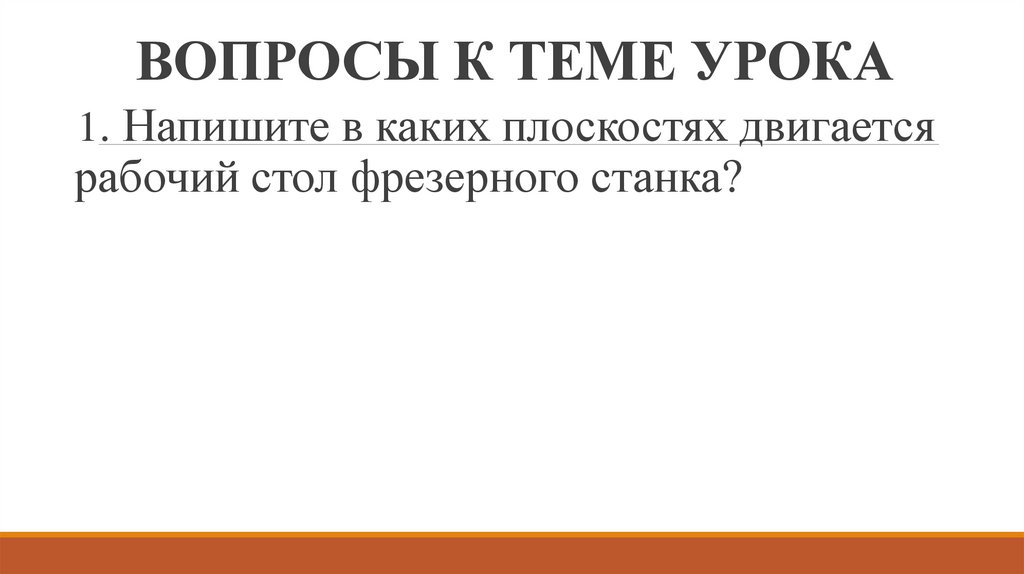 ВОПРОСЫ К ТЕМЕ УРОКА1. Напишите в каких плоскостях двигается