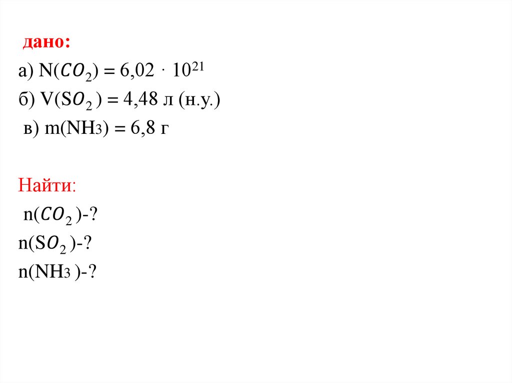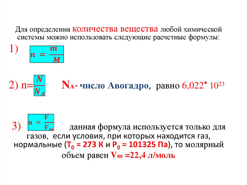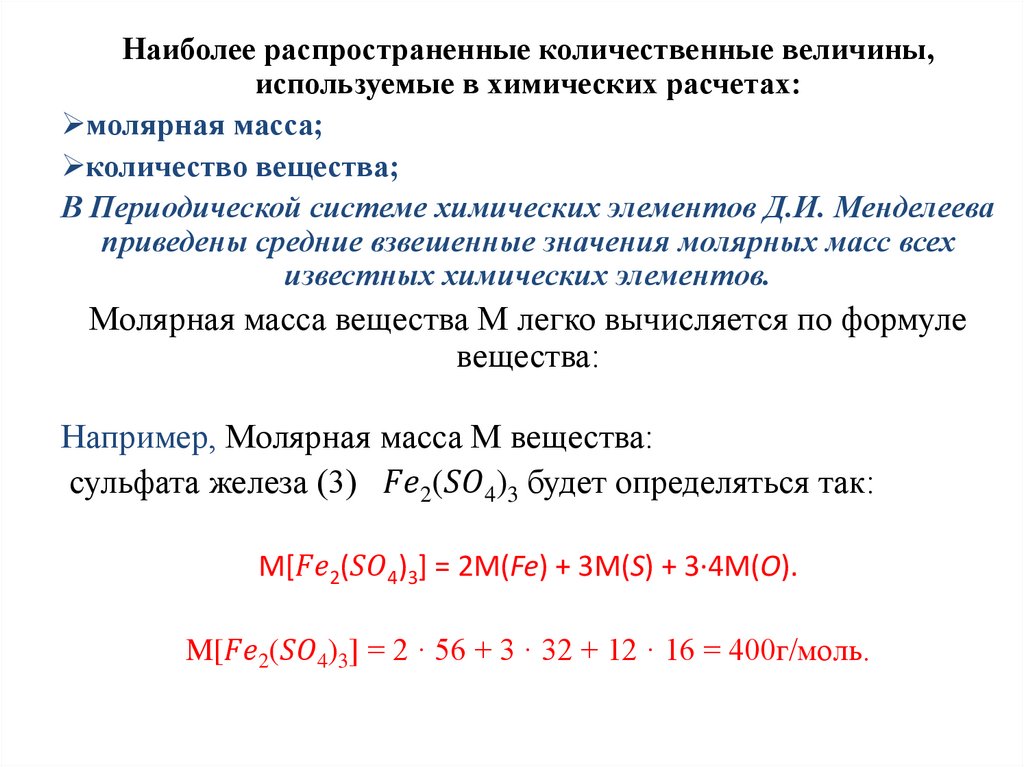 Наиболее распространенные количественные величины,используемые в химических расчетах:
