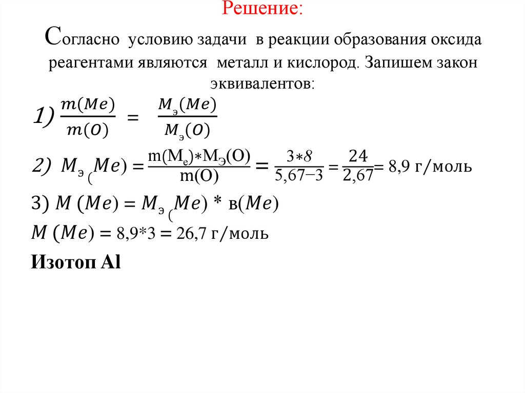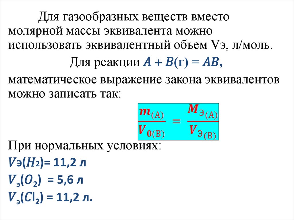 попорциональных их эквивалентам.