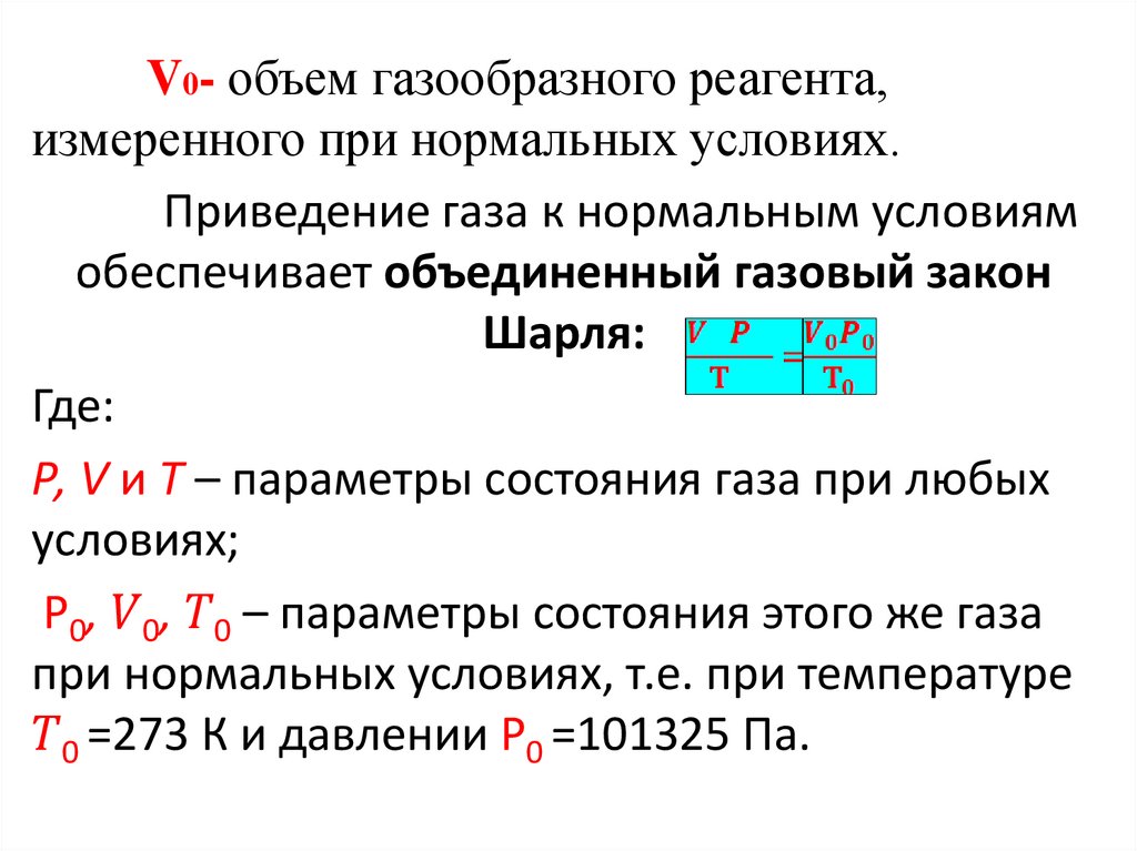 где Р – давление газа, кПа; V – его объем, л; Т – температура, К;