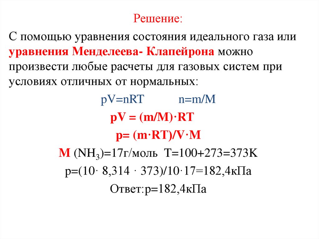 уравнения Менделеева- Клапейрона можно произвести