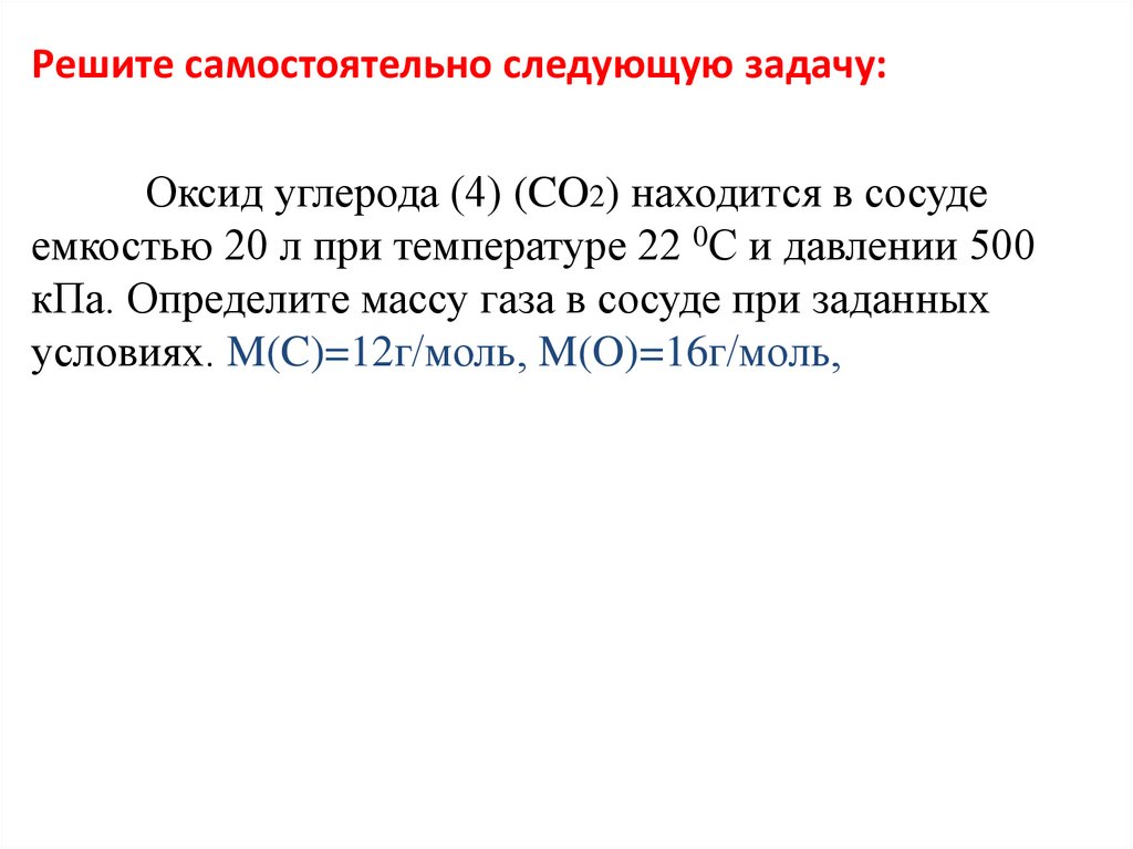 m – физическая масса газа,г; М – его молярная масса, г/моль;