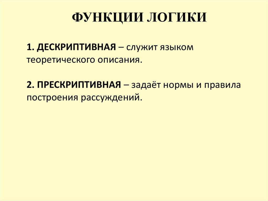 ФУНКЦИИ ЛОГИКИ1. ДЕСКРИПТИВНАЯ – служит языком