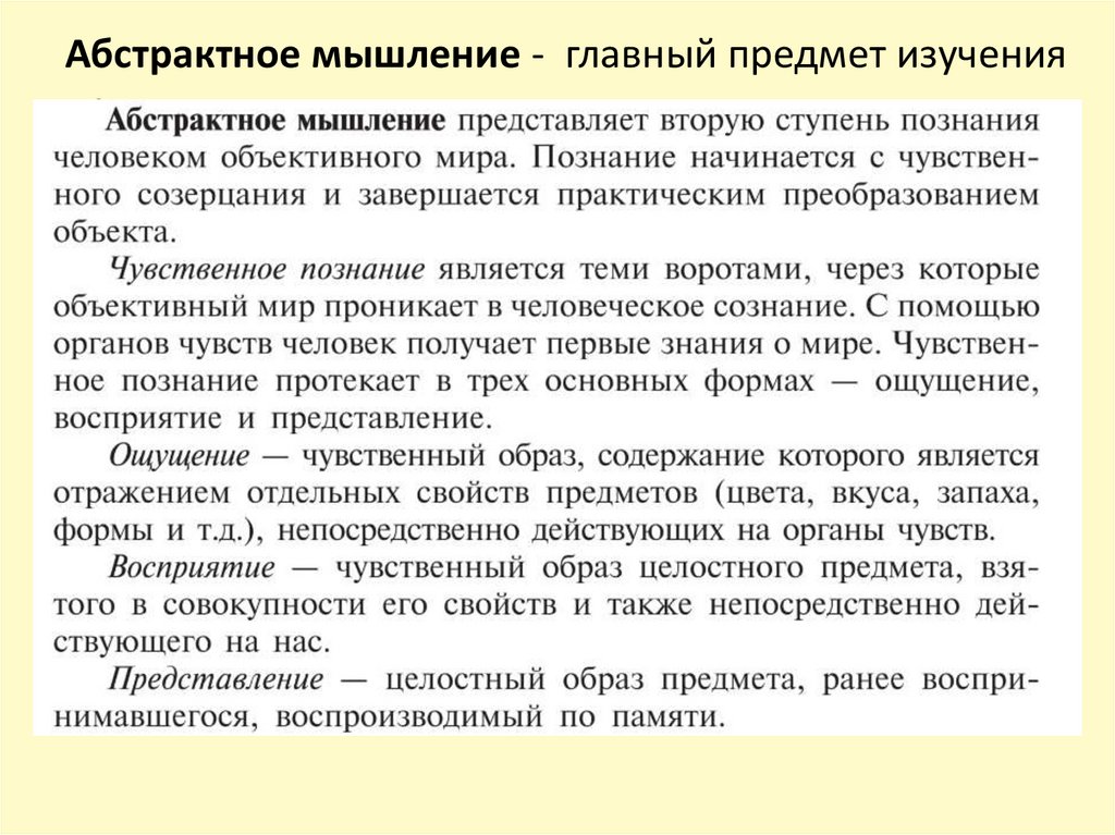 Абстрактное мышление - главный предмет изучениялогики.