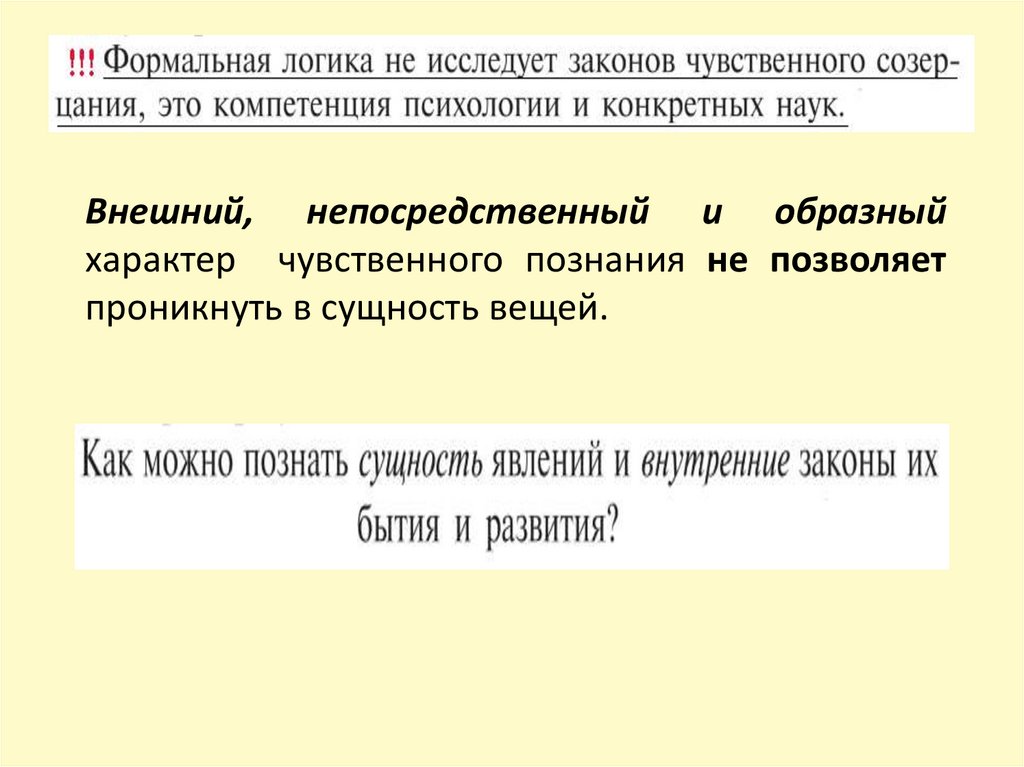 Внешний, непосредственный и образныйхарактер чувственного познания не позволяет