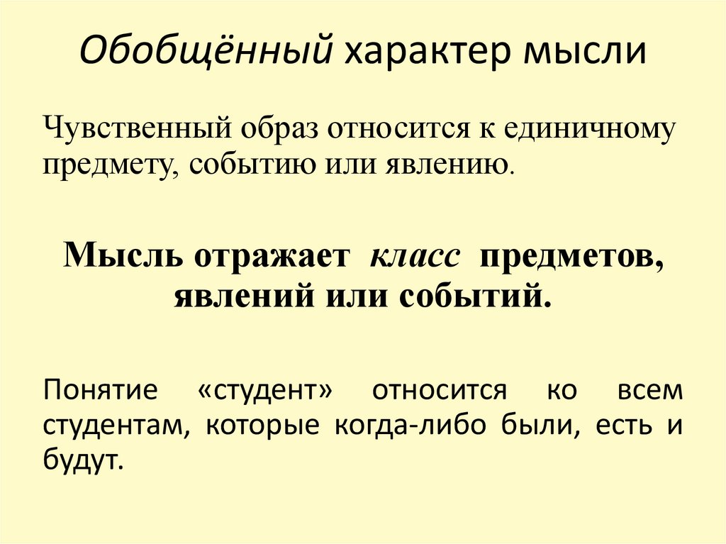 Обобщённый характер мыслиЧувственный образ относится к единичному
