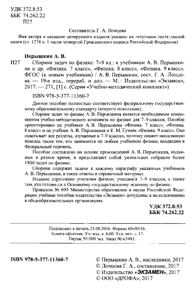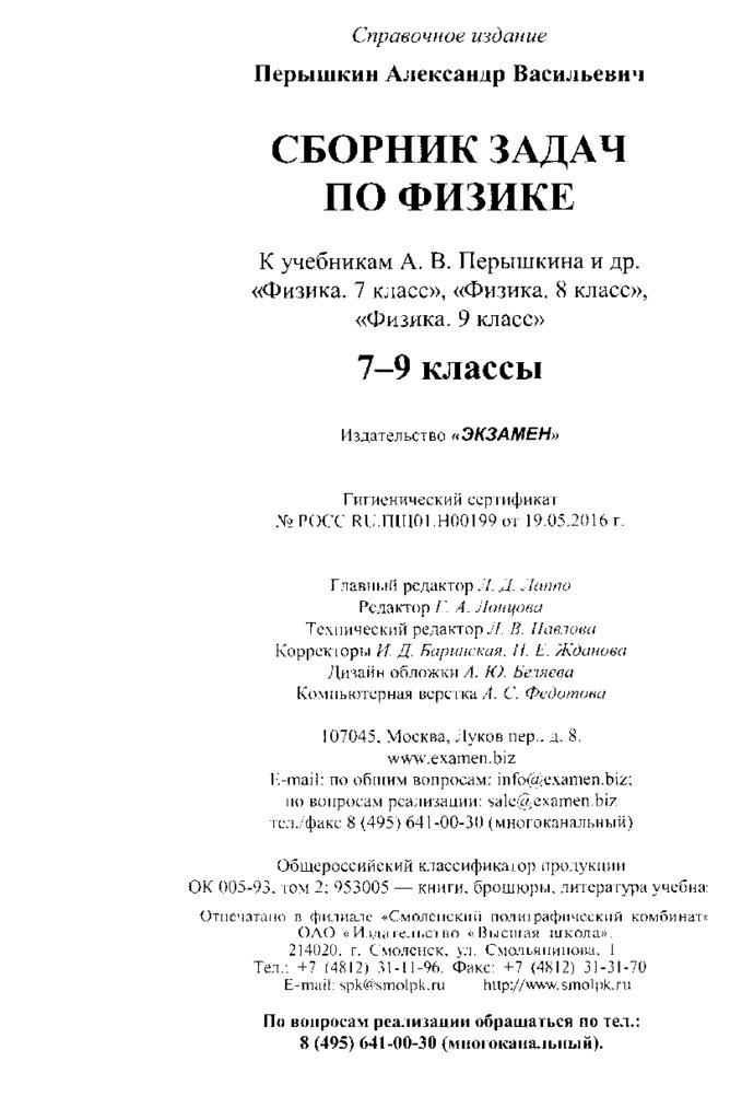 Сборник задач по физике (7-9 класс)