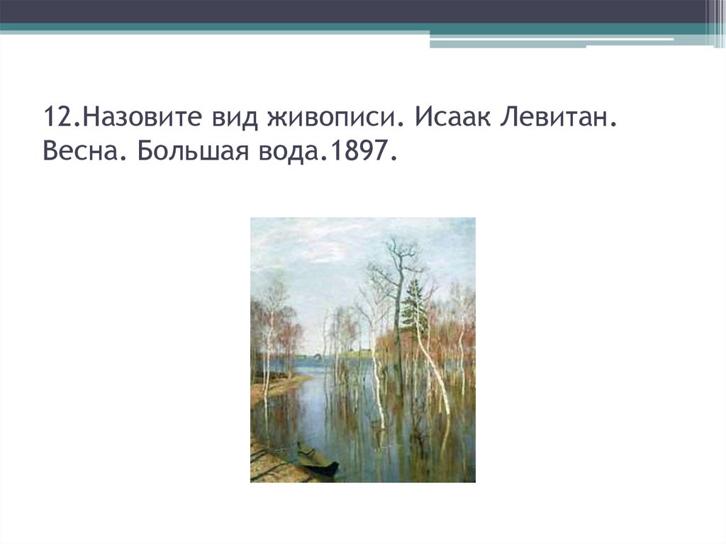12.Назовите вид живописи. Исаак Левитан.Весна. Большая вода.1897.