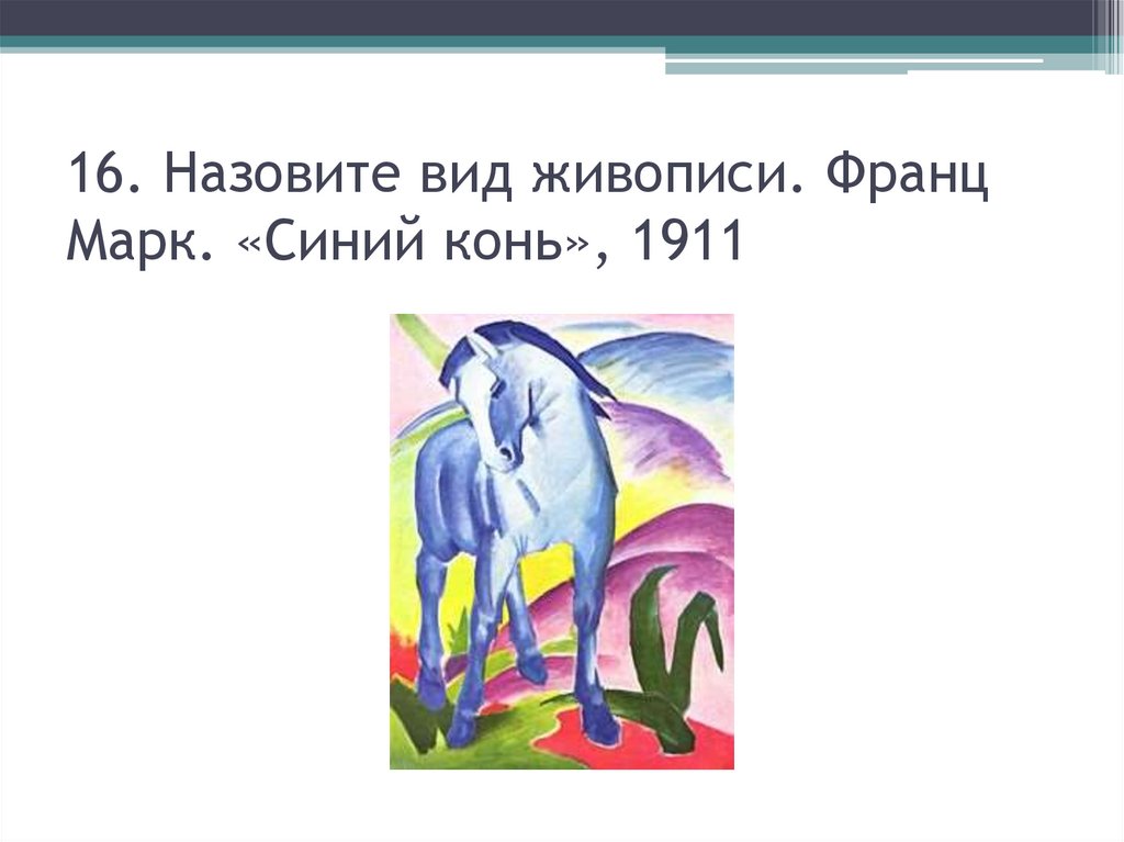16. Назовите вид живописи. ФранцМарк. «Синий конь», 1911