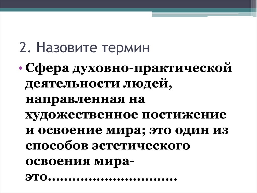 2. Назовите термин• Сфера духовно-практической
