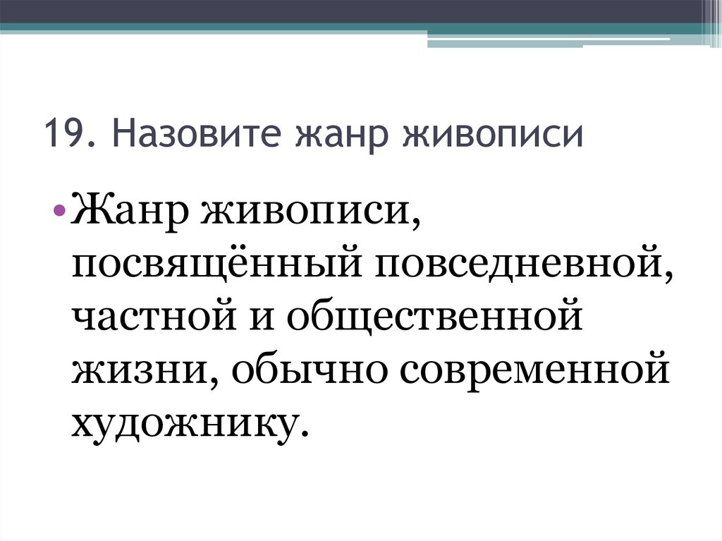 19. Назовите жанр живописи•Жанр живописи,