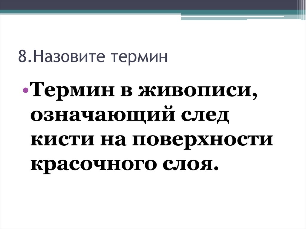 8.Назовите термин•Термин в живописи,