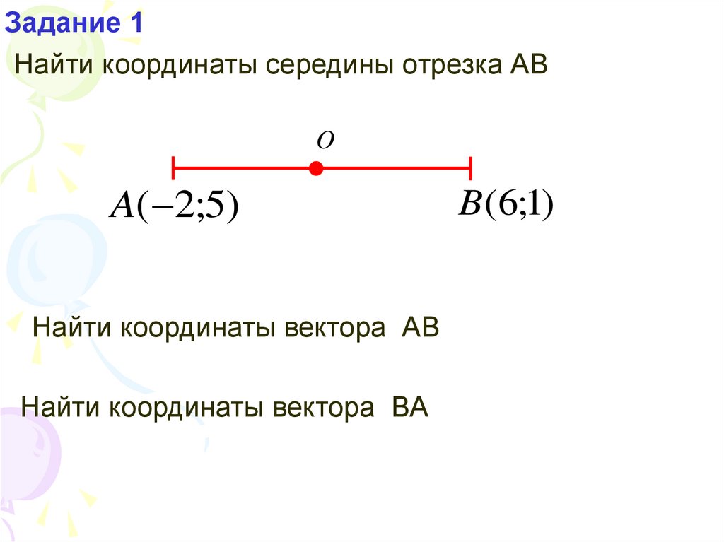 Задание 1Найти координаты середины отрезка АВ