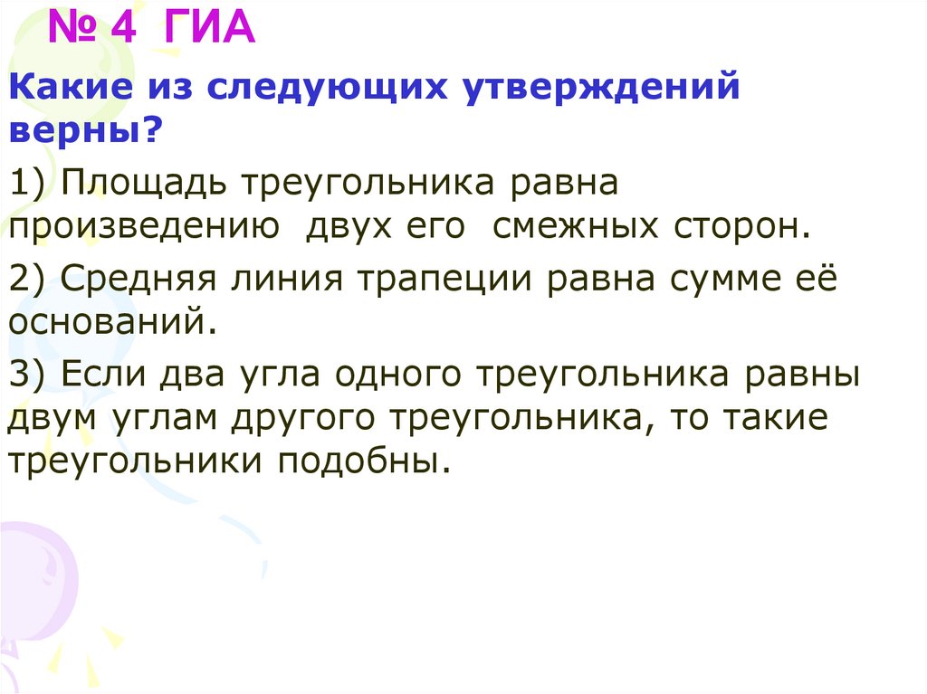 № 4 ГИАКакие из следующих утверждений