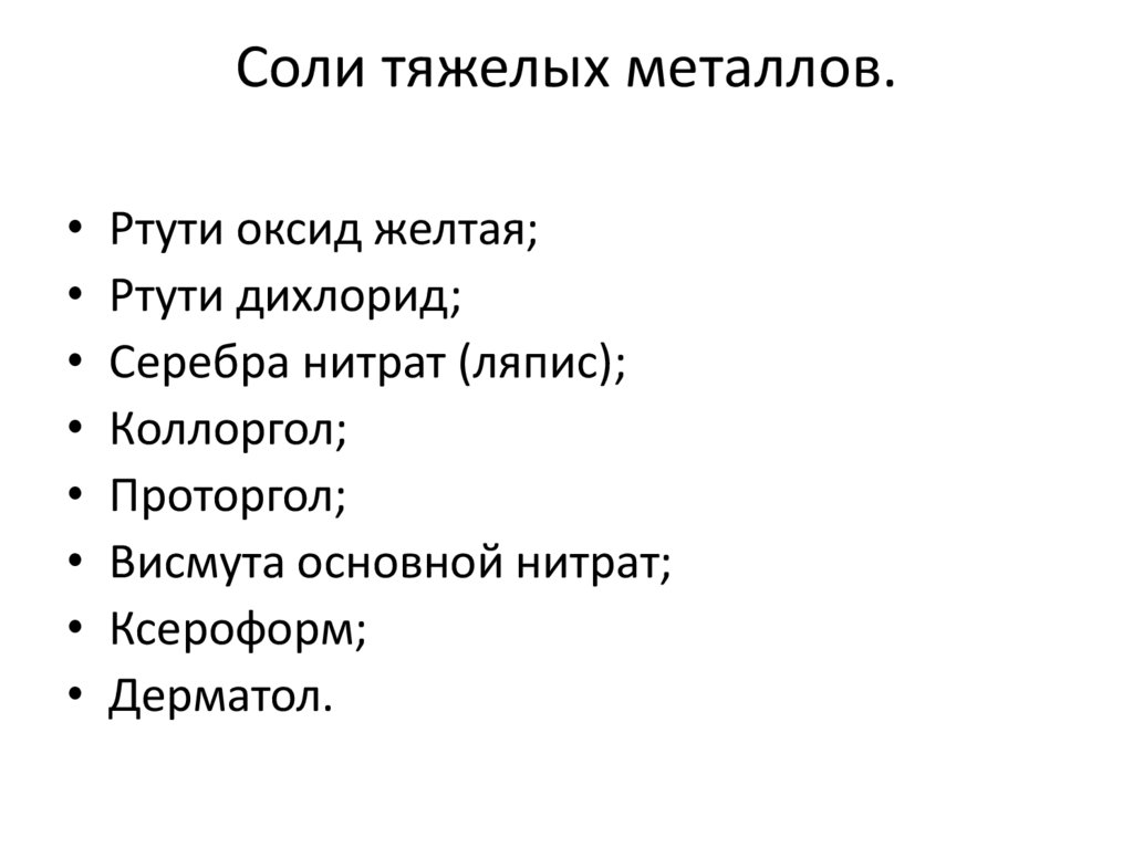 Соли тяжелых металлов.Ртути оксид желтая;