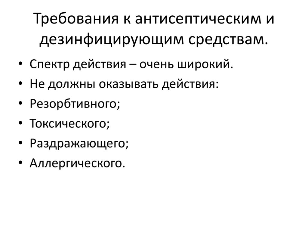 Требования к антисептическим идезинфицирующим средствам.