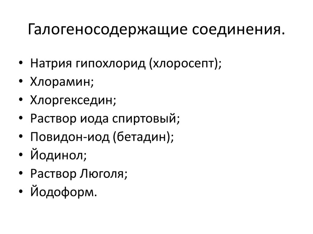 Галогеносодержащие соединения.Натрия гипохлорид (хлоросепт);