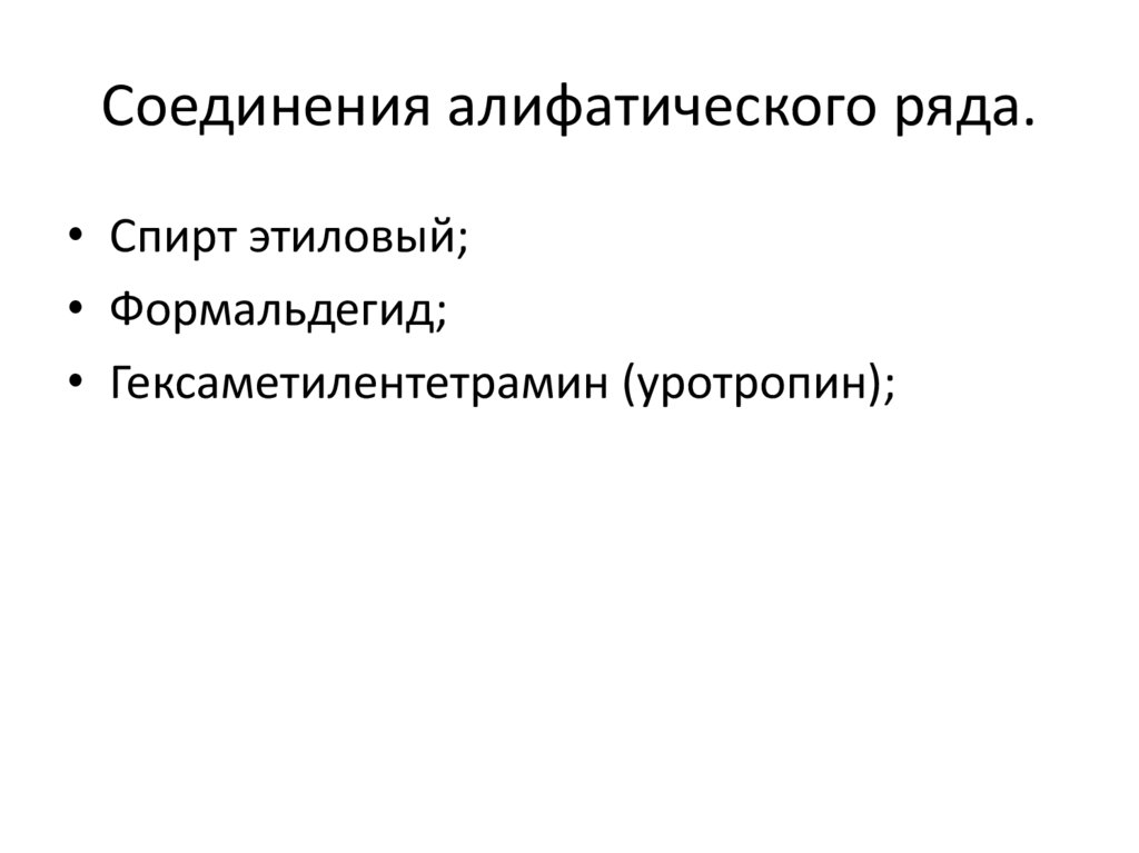 Соединения алифатического ряда.• Спирт этиловый;
