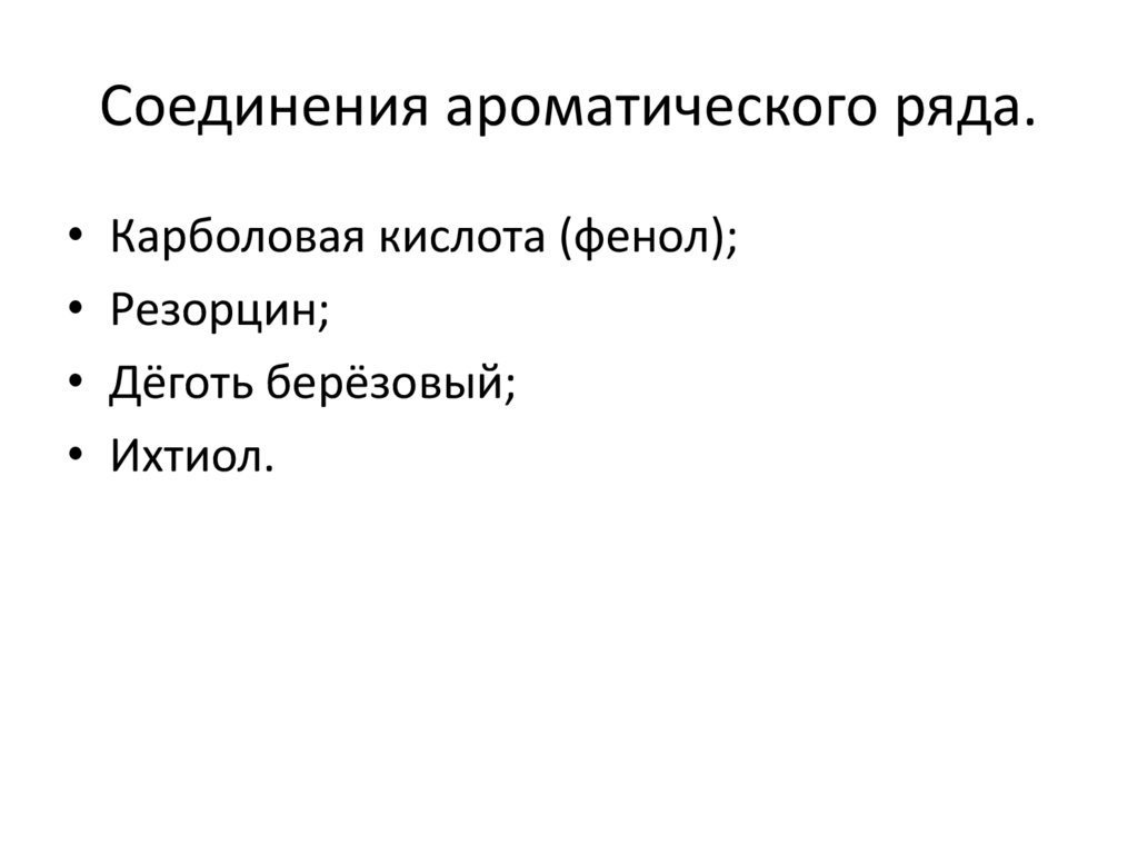 Соединения ароматического ряда.Карболовая кислота (фенол);