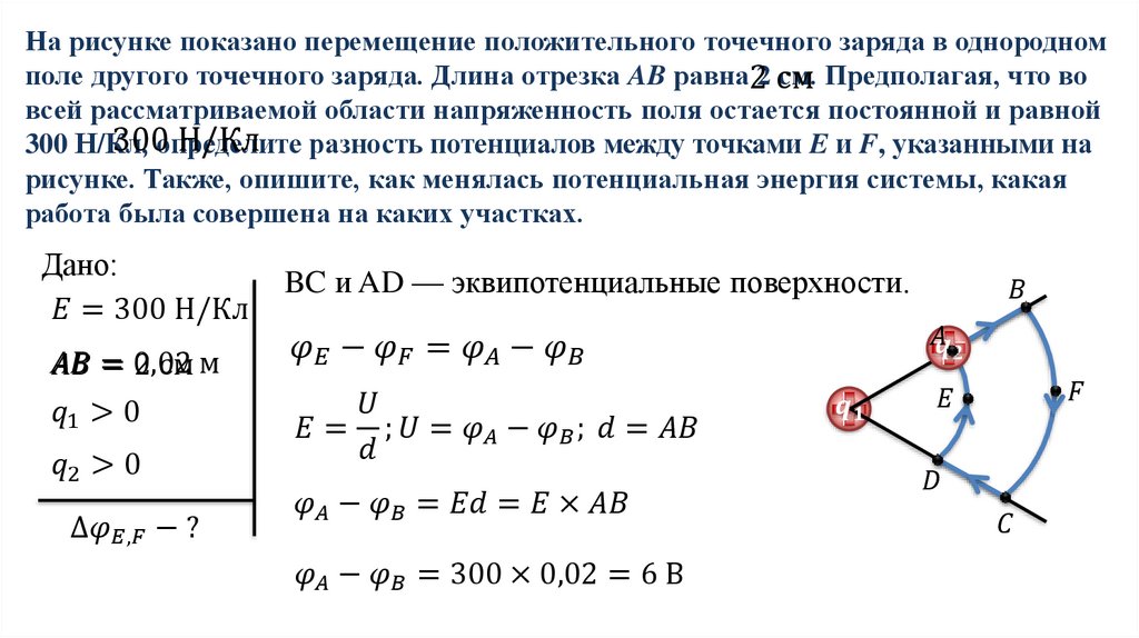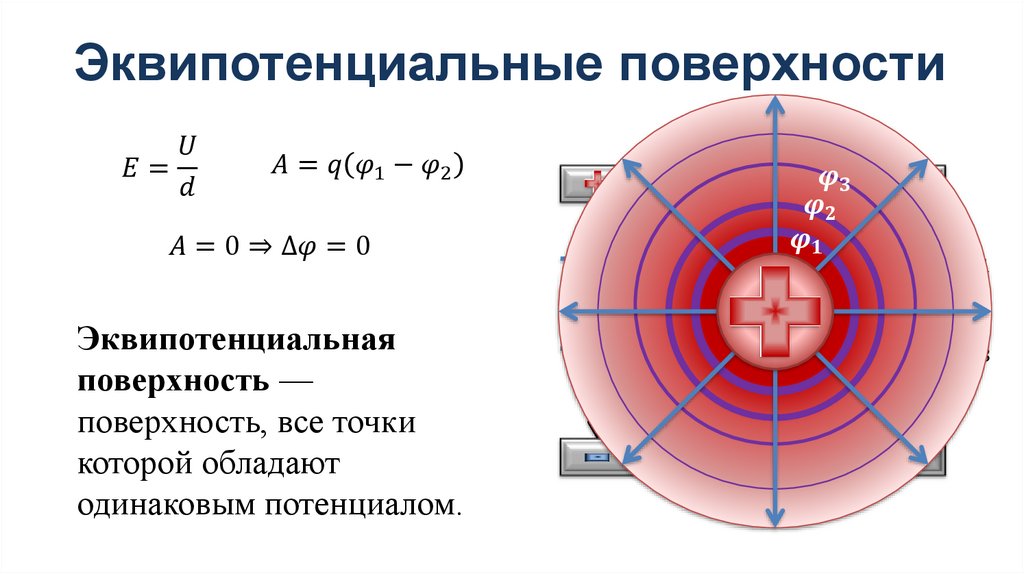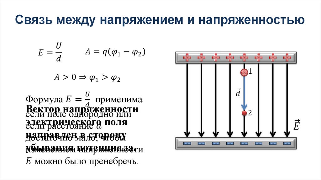 Связь между напряженностью и разностью потенциалов для однородных электрических полей. Эквипотенциальные поверхности
