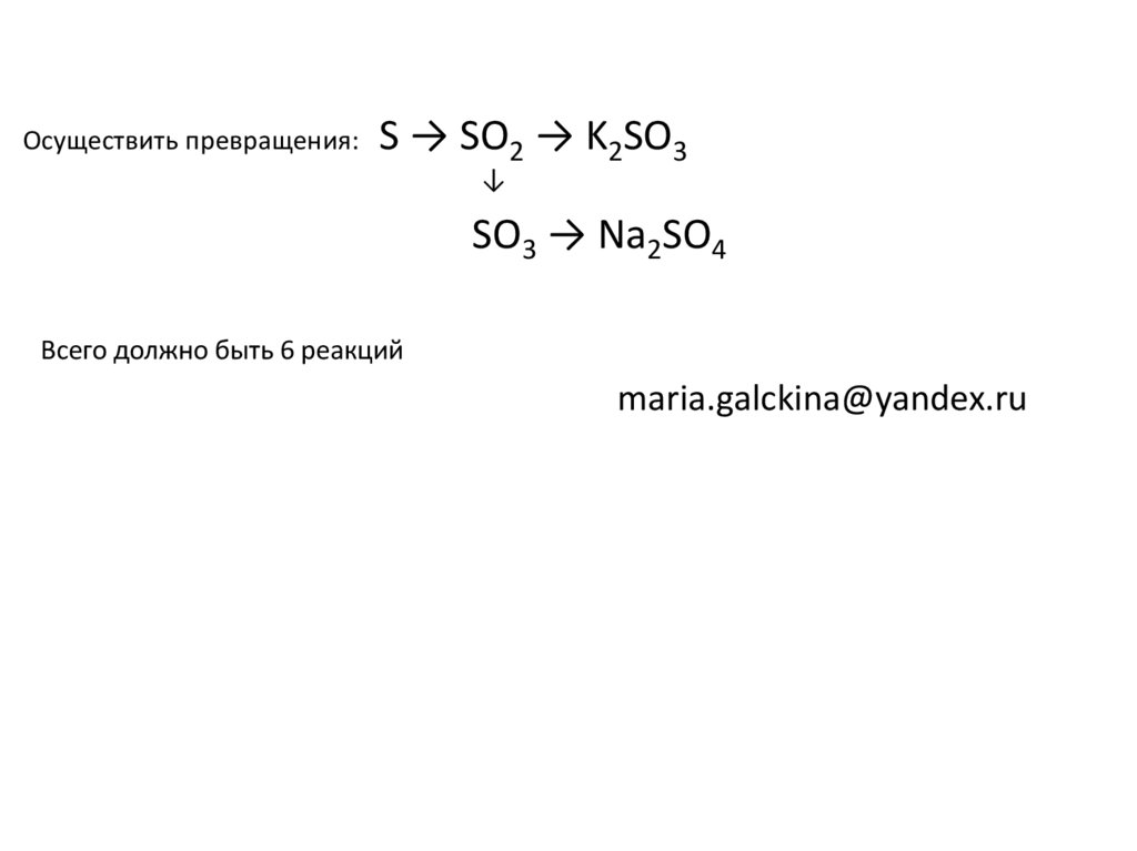 Осуществить превращения:S → SO2 → K2SO3