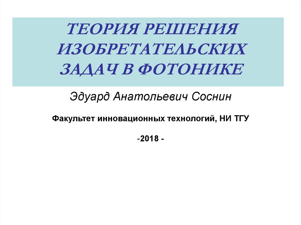 1. ТЕОРИЯ РЕШЕНИЯ ИЗОБРЕТАТЕЛЬСКИХ ЗАДАЧ В ФОТОНИКЕ