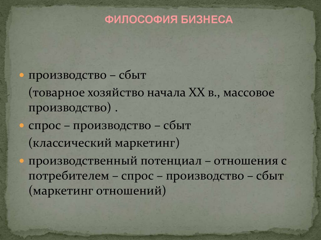 ФИЛОСОФИЯ БИЗНЕСАпроизводство – сбыт