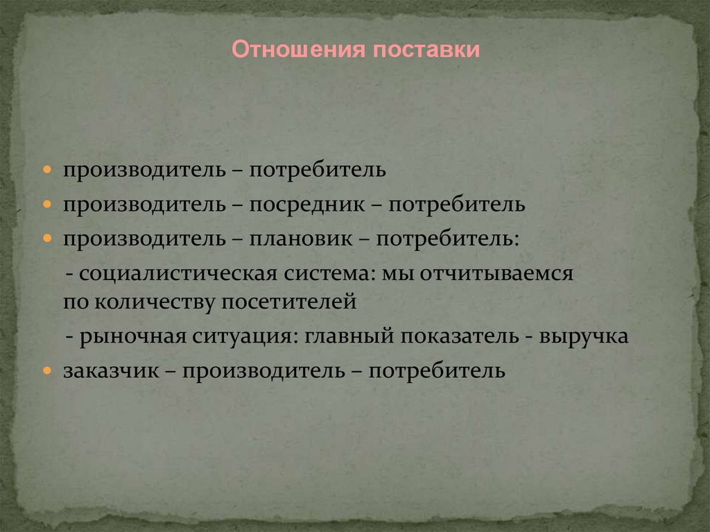 Отношения поставкипроизводитель – потребитель
