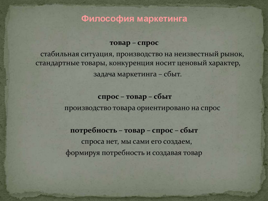 Философия маркетингатовар – спрос